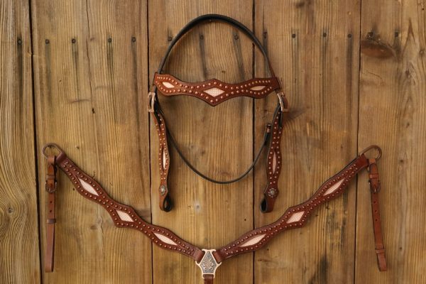 Krásne zdobený westernový set z pravej kože. Každý tento set pozostáva z nádherne tvarovaného westernového poprsníka a uzdy. Westernová uzdečka aj poprsák majú nastaviteľnú veľkosť, takže sadne na každého koňa s veľkosťou COB a FULL. S týmto setom vyniknete nie len na kolbiskách, pretekoch, ale aj na skupinovej jazde.